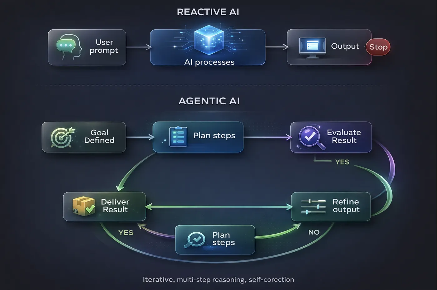 Consider a practical example. Ask a system to “prepare a market analysis.” Previously, the system would generate a static document based on whatever information it had access to. Today, a more advanced system interprets that request as a multi-stage objective. It identifies what data is needed, retrieves it from multiple sources, compares trends, generates an initial report, evaluates its completeness, refines weak sections, and delivers the result.