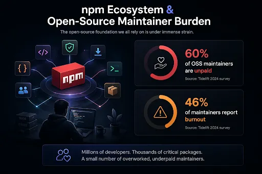 This creates a structural vulnerability at the heart of modern software. The most critical infrastructure in the ecosystem the libraries that everything depends on is often maintained by the people with the fewest resources to implement enterprise-grade security measures. No mandatory 2FA enforcement on publishing. No formal code review process for releases. No security audit budget. No incident response team.