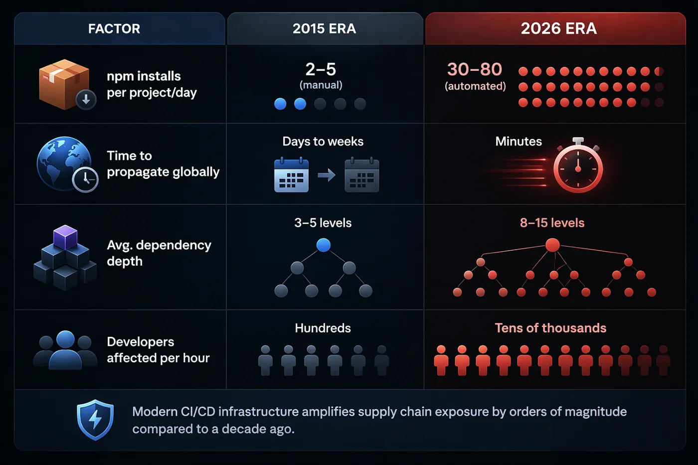 That ubiquity is precisely the point. When an attacker compromises a package that sits in millions of dependency trees, they do not need to target individual companies. They target the ecosystem itself. One compromised package becomes a skeleton key.